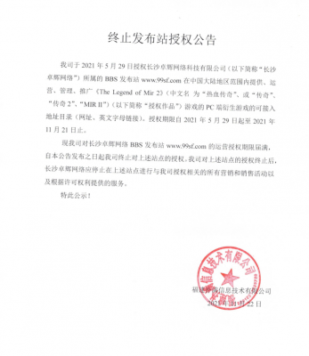 202201-22我司于2021年10月29日授权域名(主域名:www.92f.com)在中国大陆地区范围内提供运营、管理、推广《The Legend Of Mir...